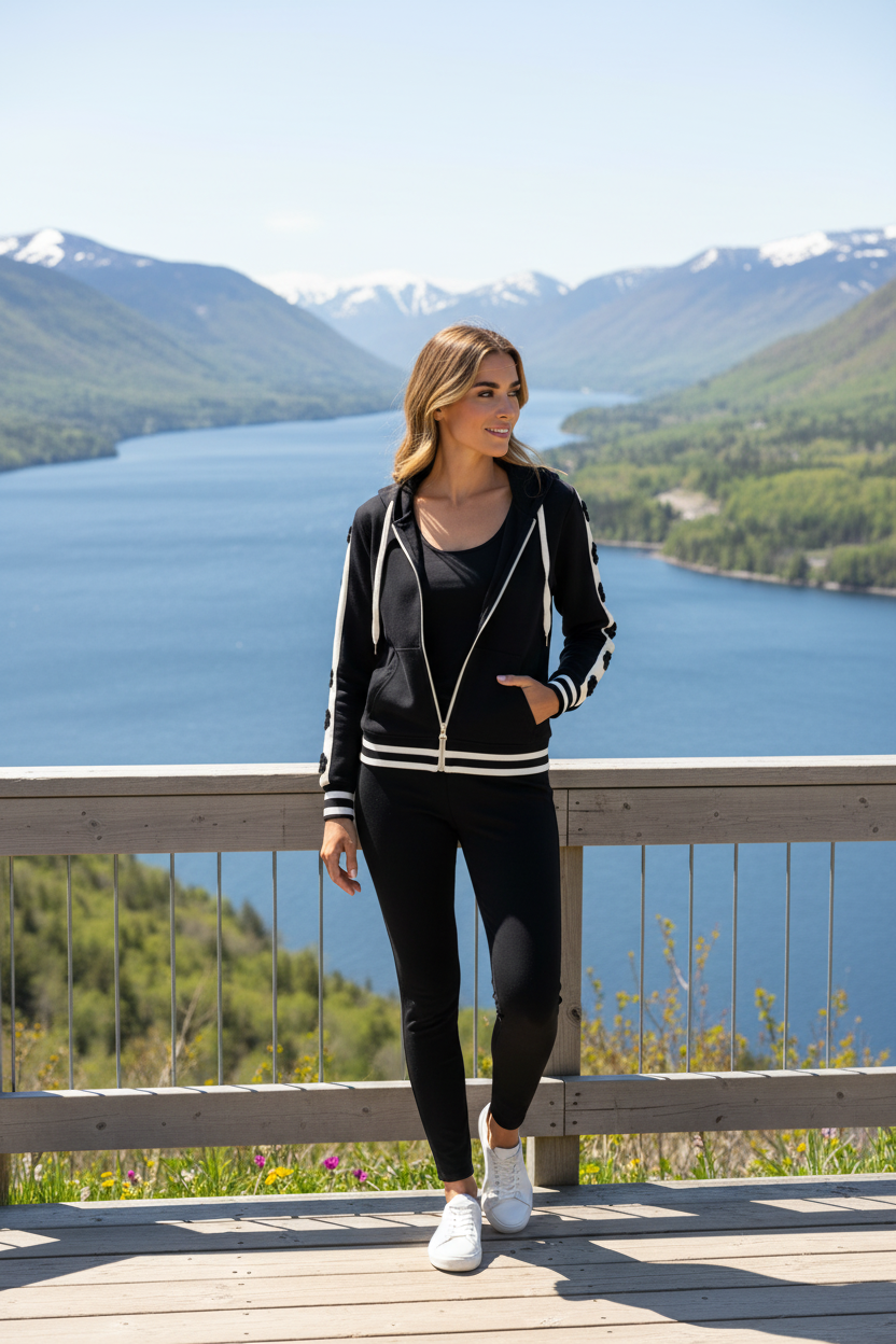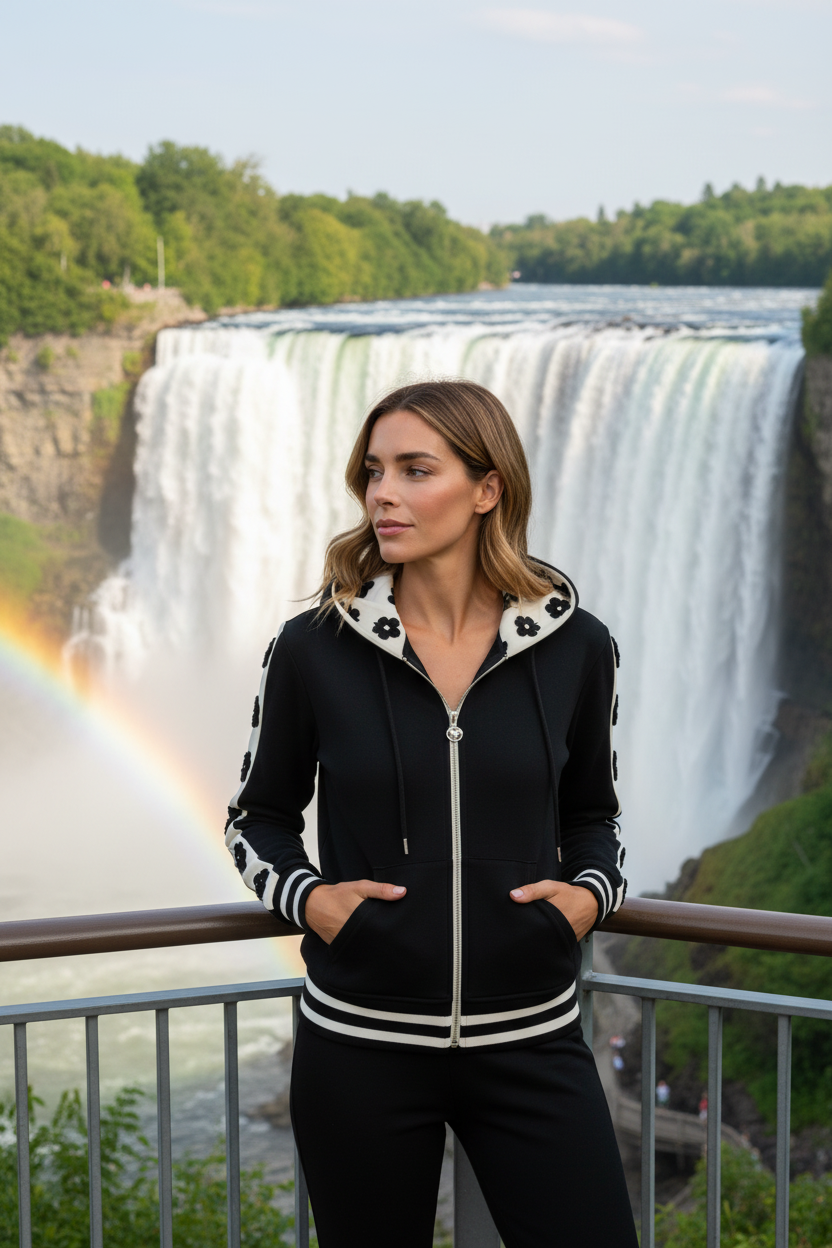 Cette veste Orly Clothing incarne le parfait équilibre entre style sportif et élégance urbaine. Conçue pour la femme moderne qui recherche une pièce polyvalente et tendance, cette veste noire avec manches ivoire devient rapidement votre alliée mode pour toutes les occasions.